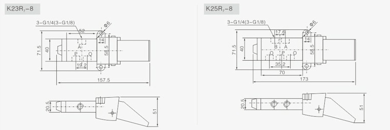 K23R7-L6 K25R7-L8系列二位三通五通直動式氣缸控制氣動腳踏換向閥